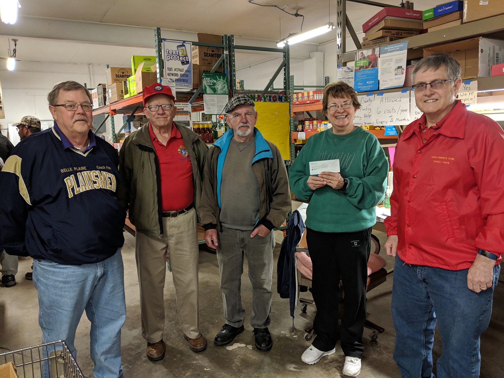 The Knights of Columbus Council #8479 presented a check in the amount of $505.00 to the Food Bank4/30/19. Present from left to right Mayor Dave Fish, Russ Upah, Joe Hanzelka, Phylis Kurriger, and Don Ward. (Pic from Belle Plaine Community Development Corporation)