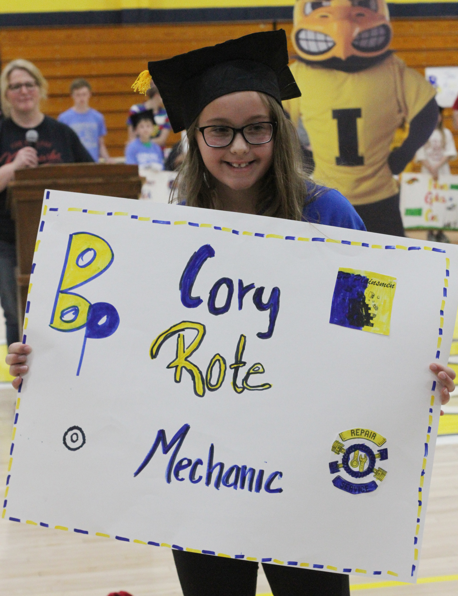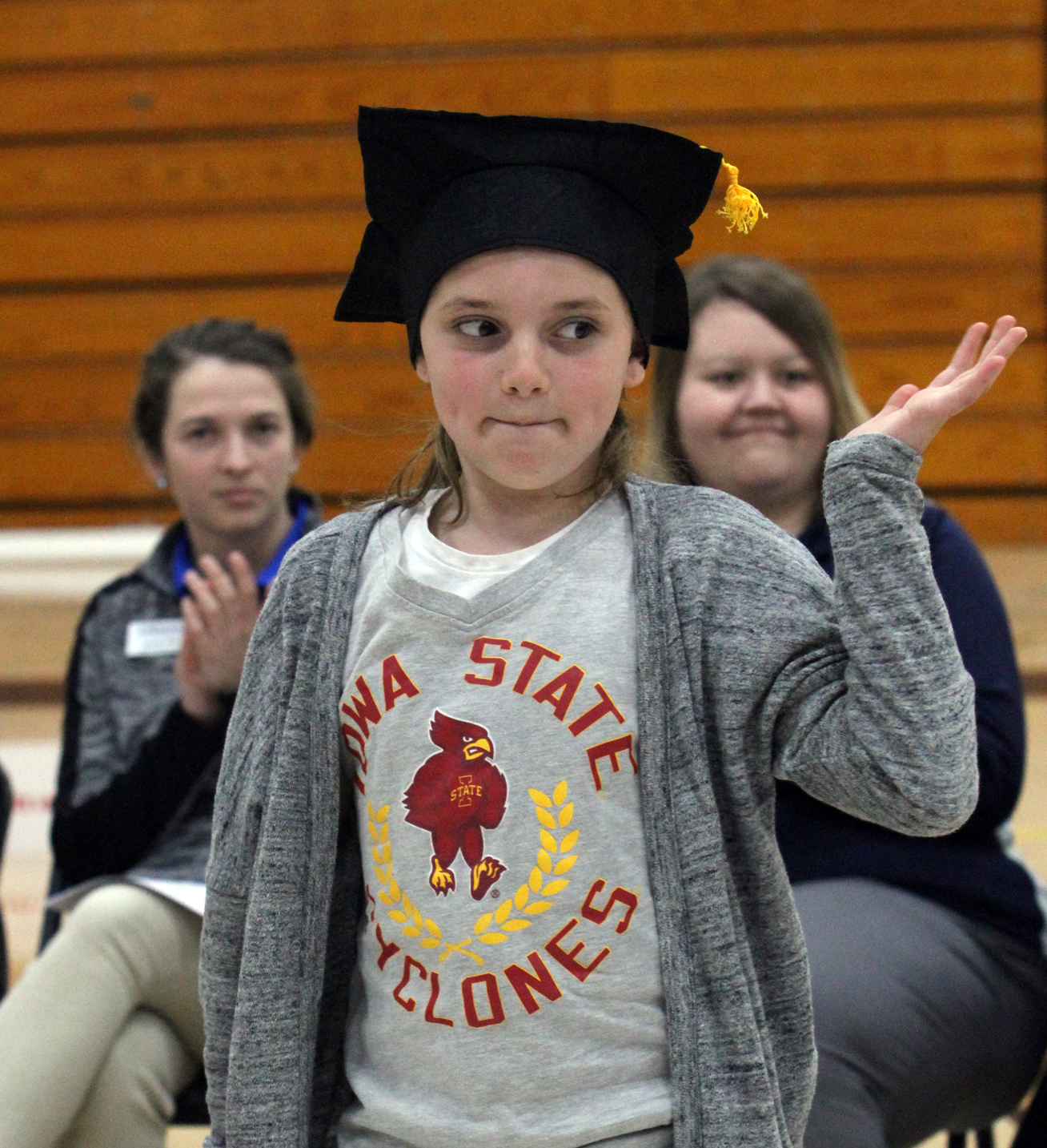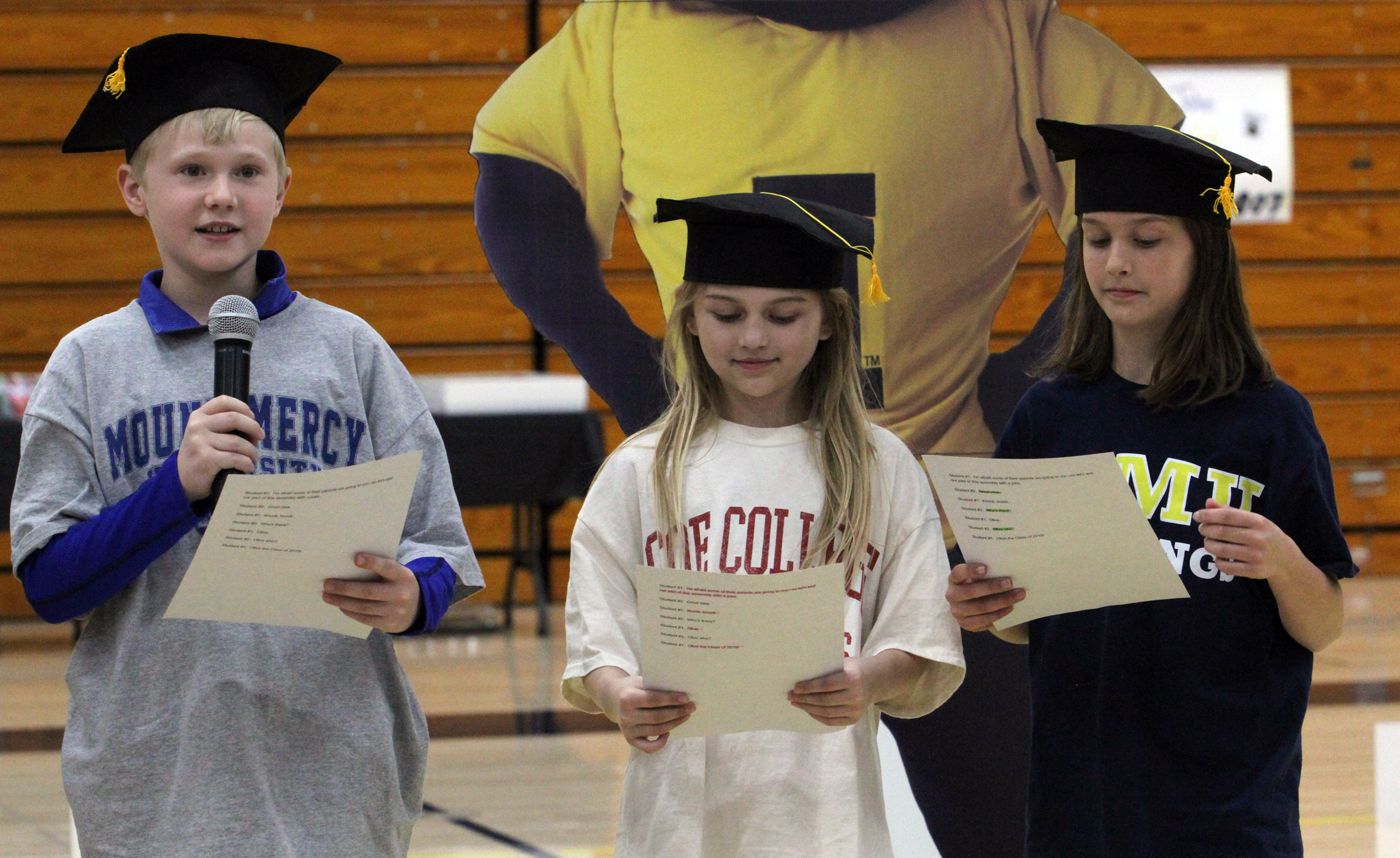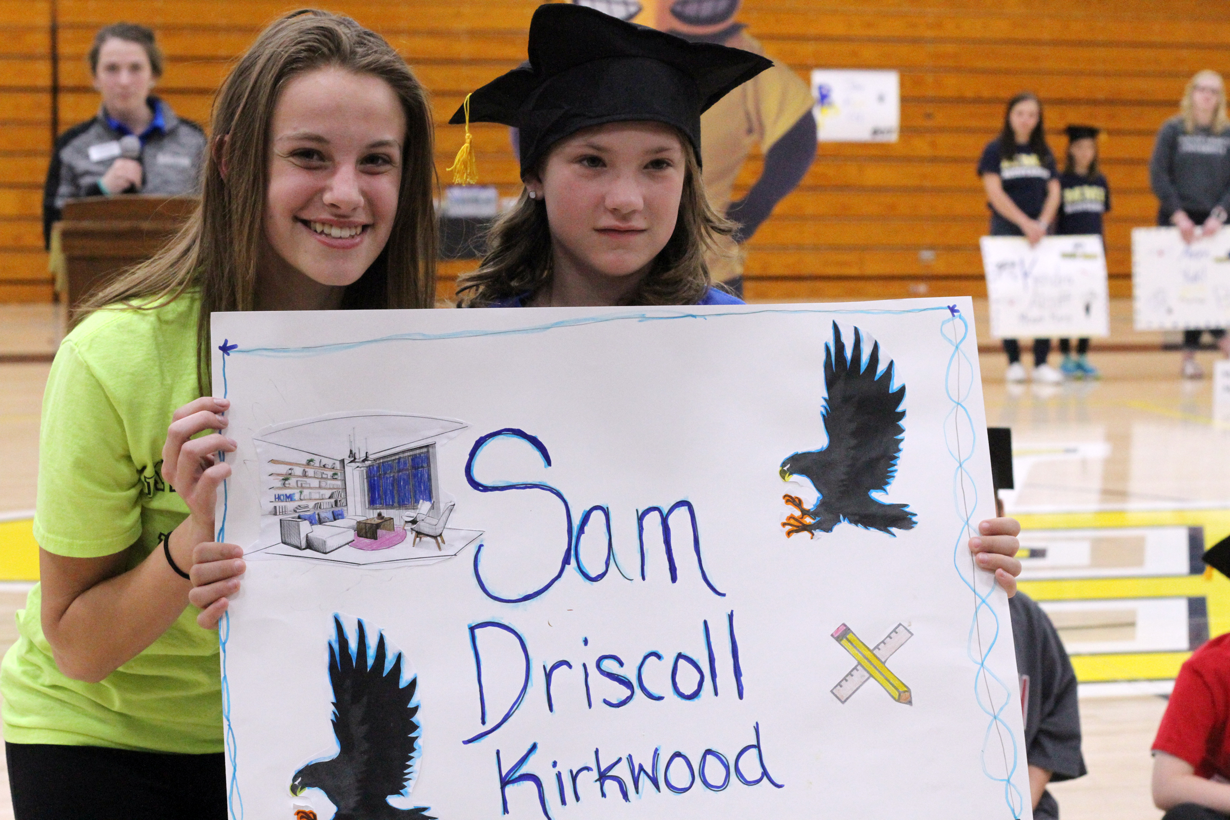 Third graders help Class of 2019 announce their post-graduation plans. Seniors are listed their third graders