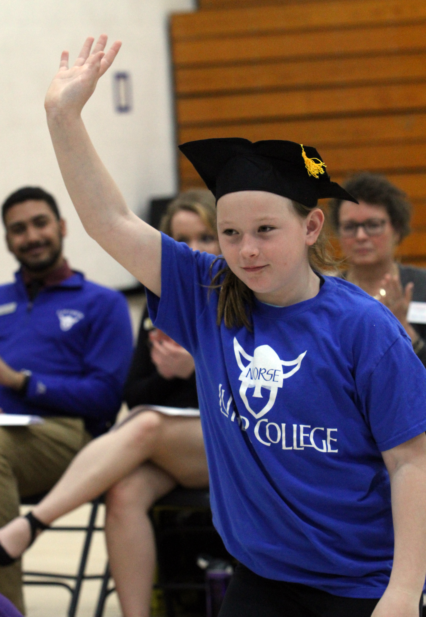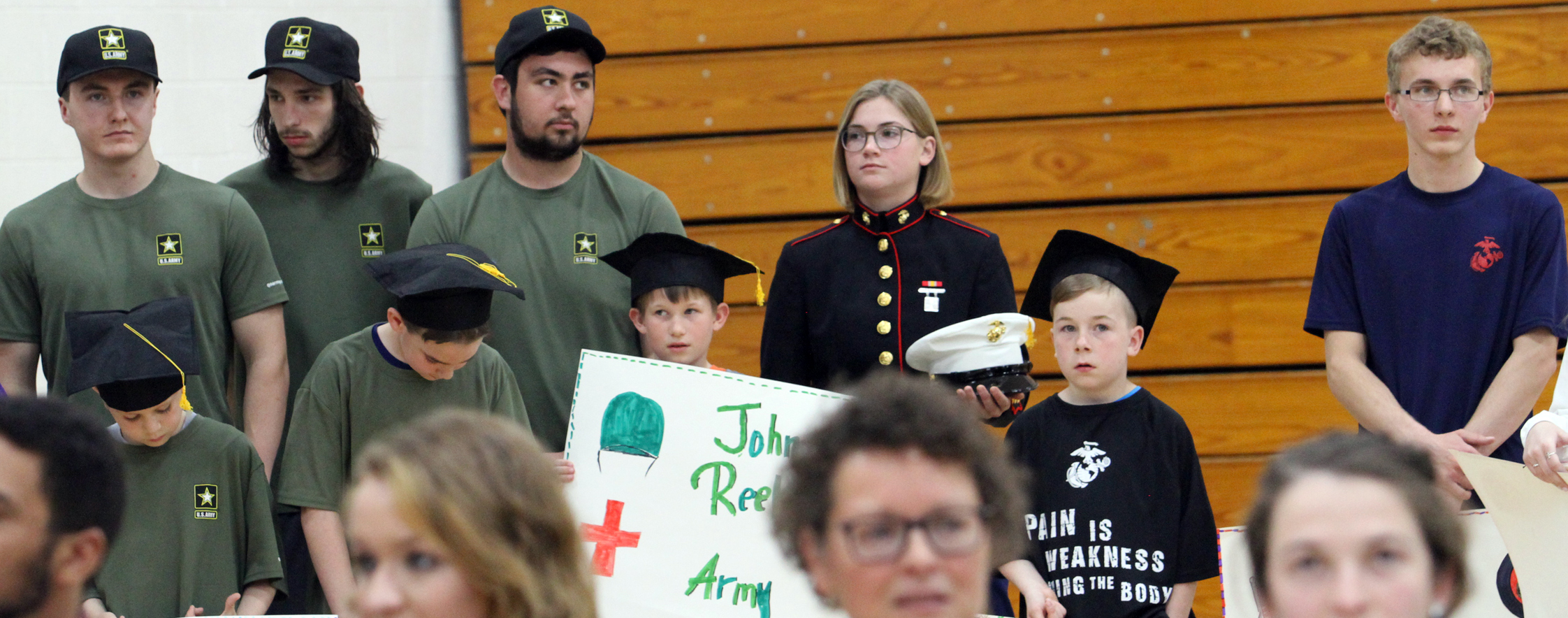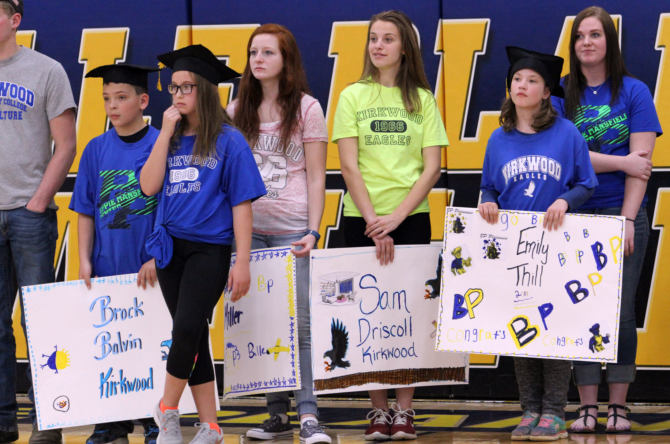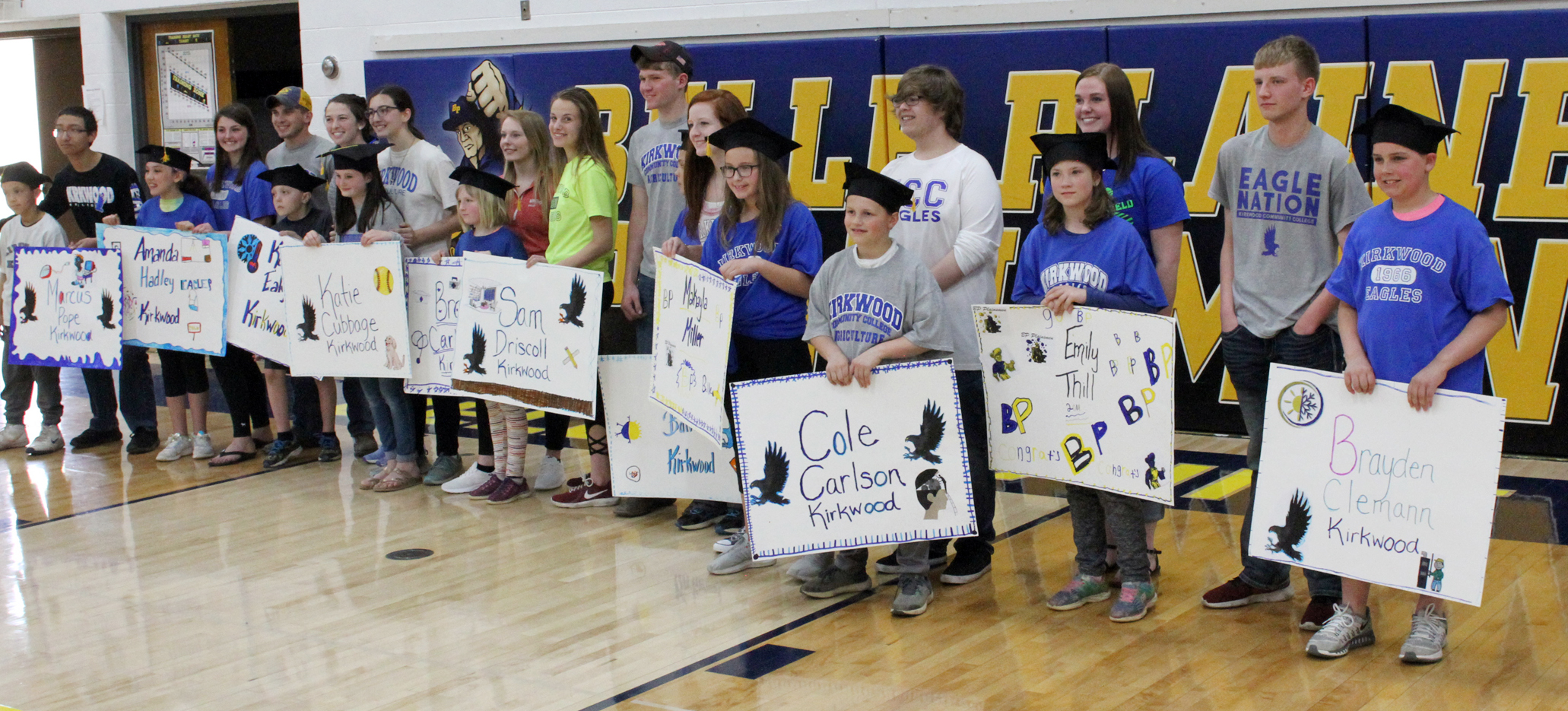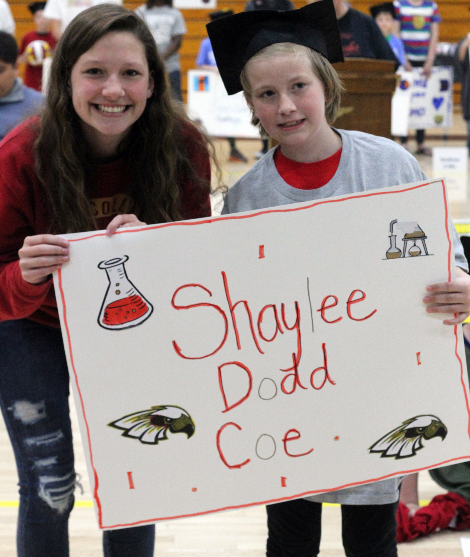 Third graders help Class of 2019 announce their post-graduation plans. Seniors are listed their third graders