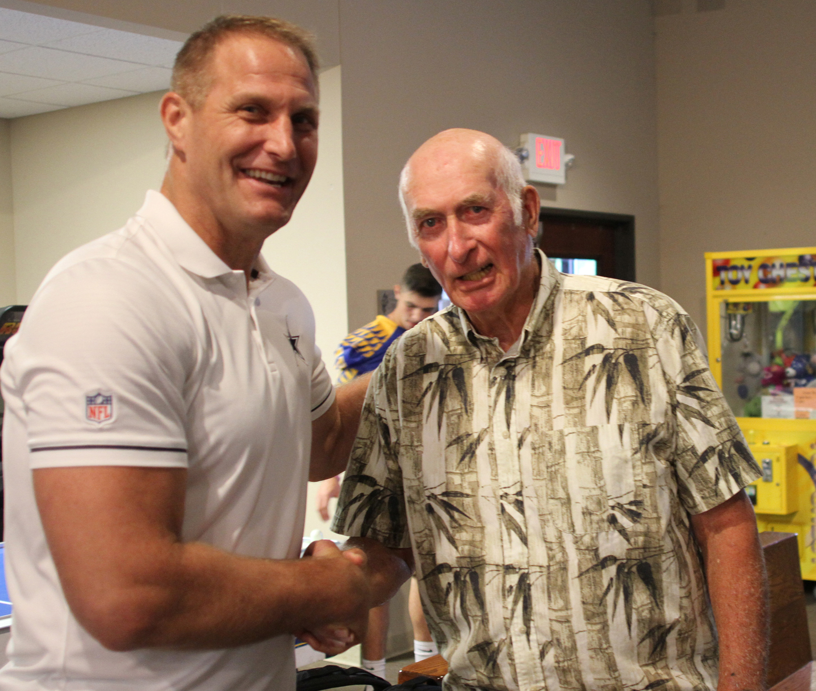 Chad, pointing to the high school athletes, pointed out that he pulled back at that time and made a commitment to himself that he would never allow himself to be defeated again. “I was going to outwork everybody,” he recalled. He became a maniac in the weight room, and did whatever it took to take it to the next level.
