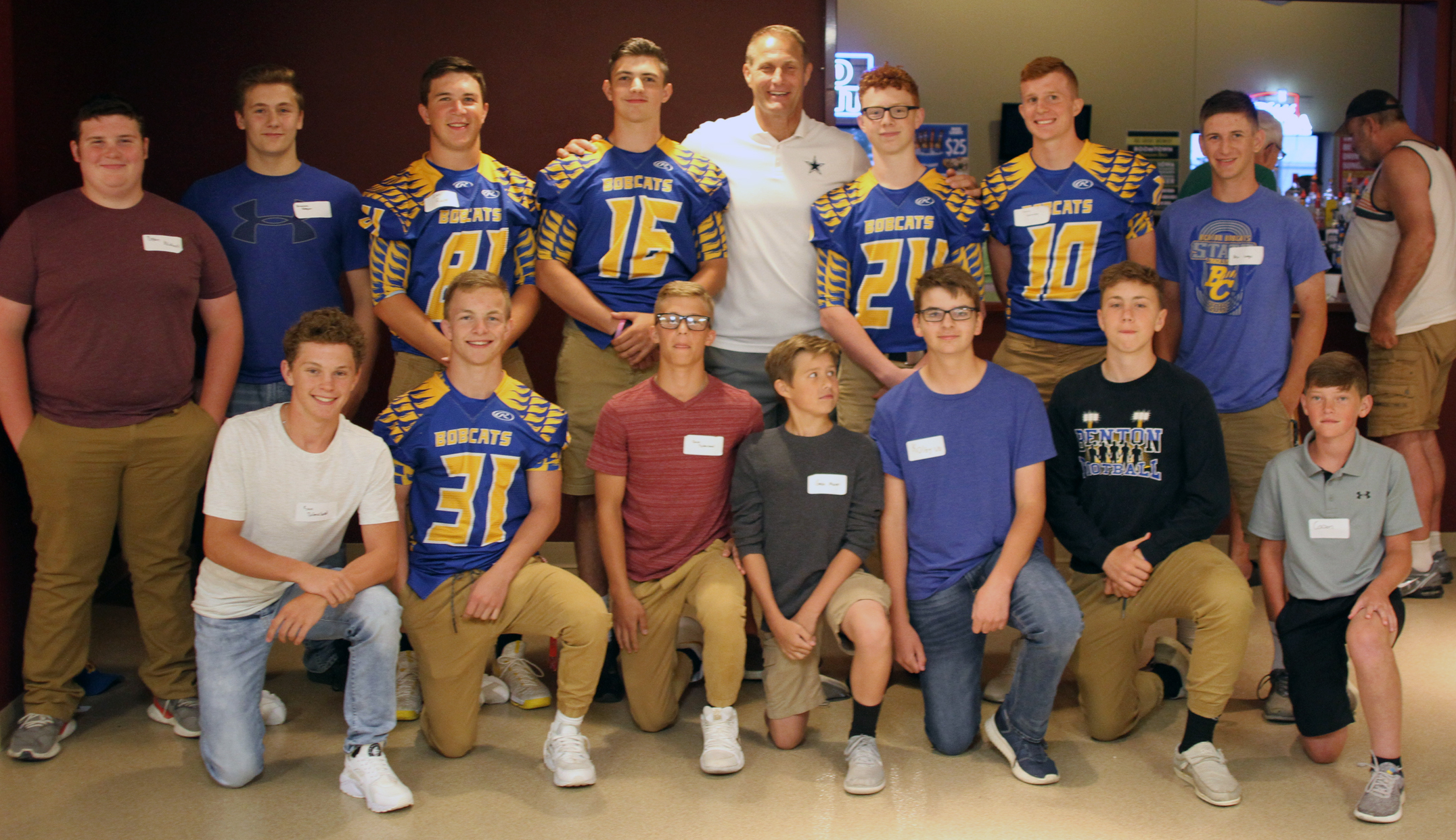 High school athlet4s pose with Chad Hennings.
