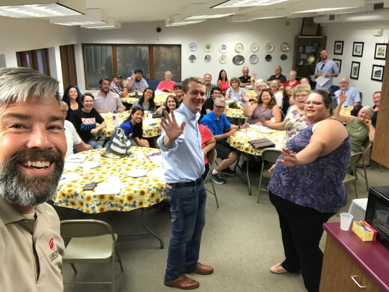 The Benton County Democratic Central Committee met Tuesday night, July 16th at the Belle Plaine Museum. In addition to the regular business, Presidential Candidate Senator Michael Bennet from Colorado, (pictured in the attached photo waving to the camera in the middle of the photo) stopped by and addressed the group.