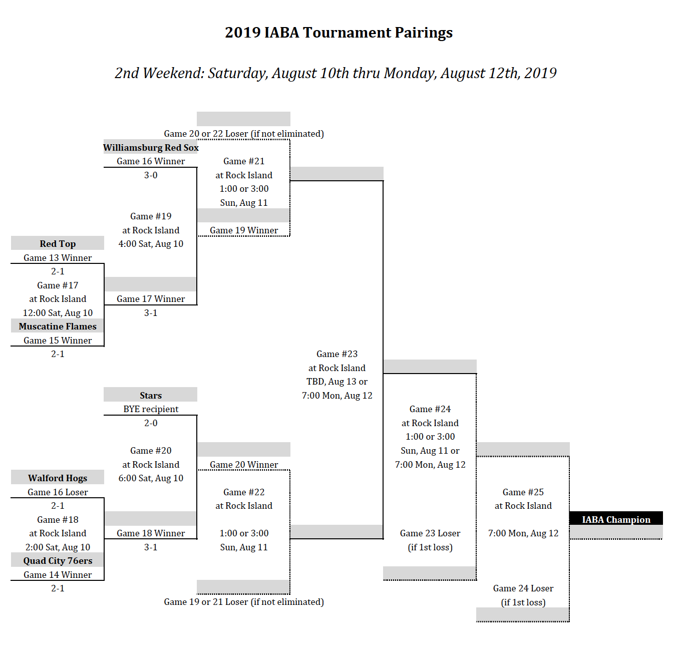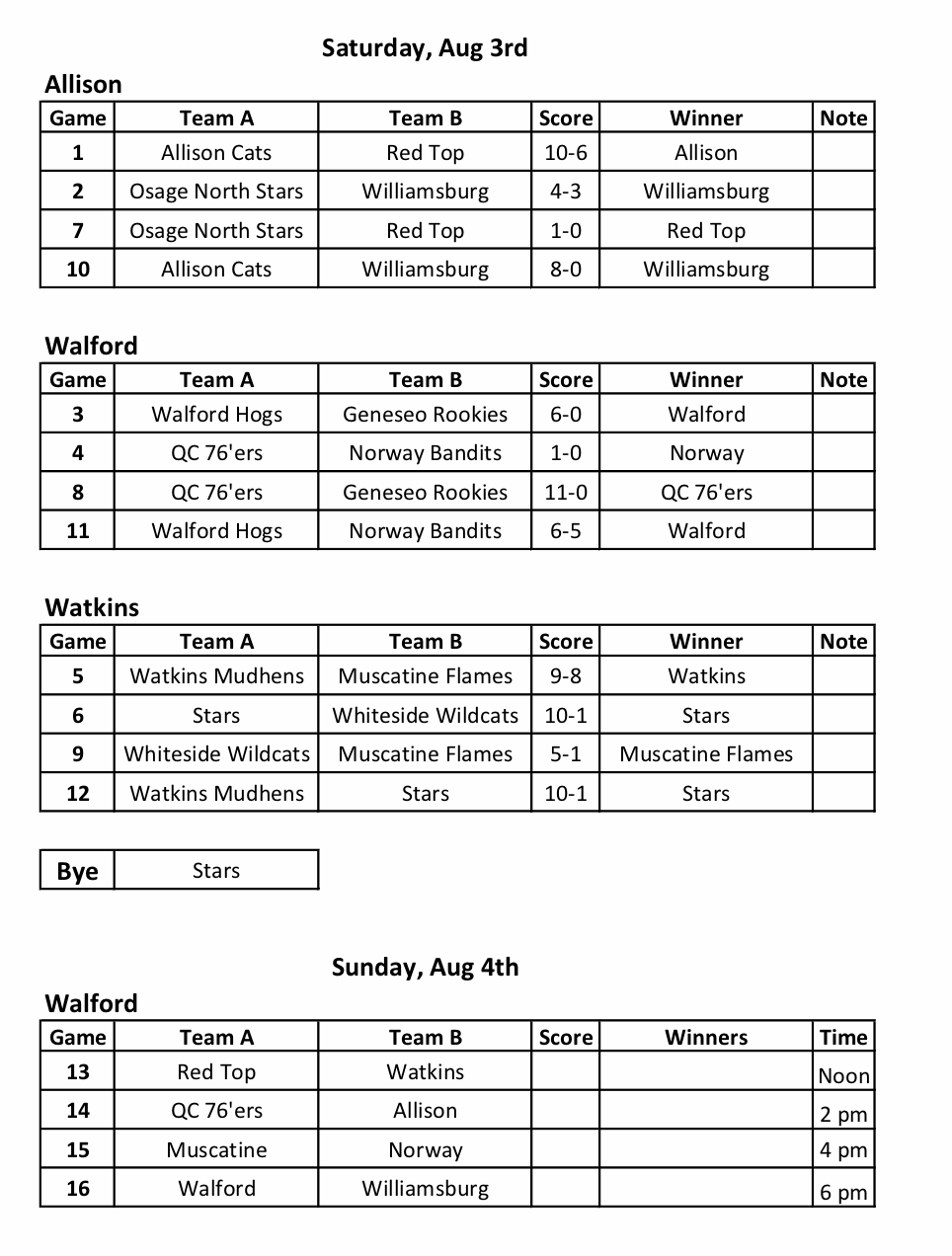 Games Scheduled at Douglas Field for Saturday August 11th: