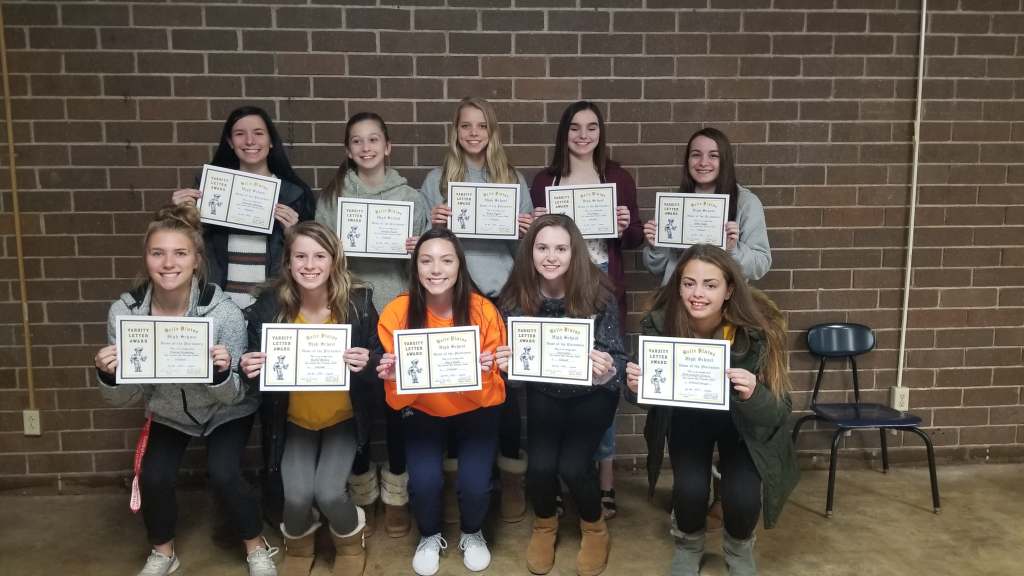 Letterwinners were, in front: Kieran Holmberg; Rachel Benton, Macy Dodd, Jacy Gates, and McKenzeigh Gannon. In back are Nicholaa Phillippe, Mandy Chizek, Alyssa Tegeler, Grace Bean and Abbie Miller.
