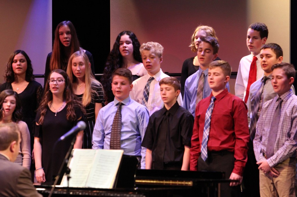 Benton’s seventh and eight grade mixed choir performs with John Hayden at the middle school “Holiday Prelude.”