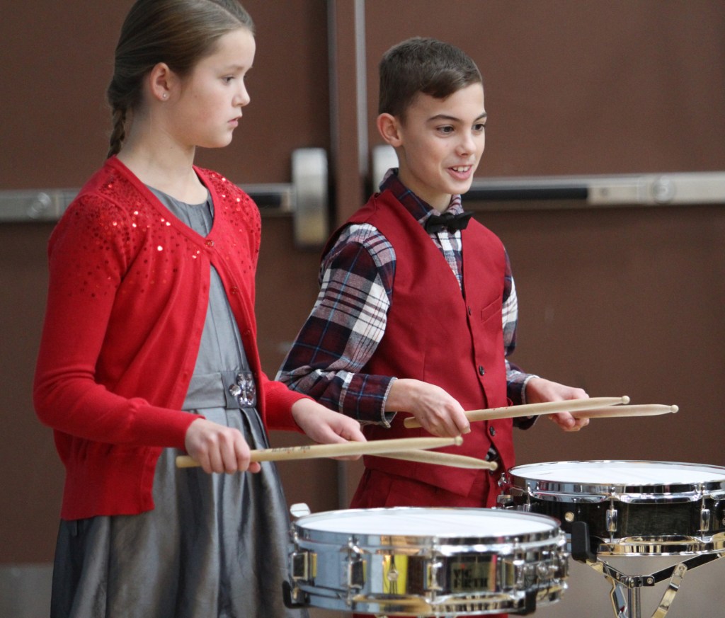 Drumming in Belle Plaine’s fifth grade band at the concert Dec. 5 at Longfellow Elementary.