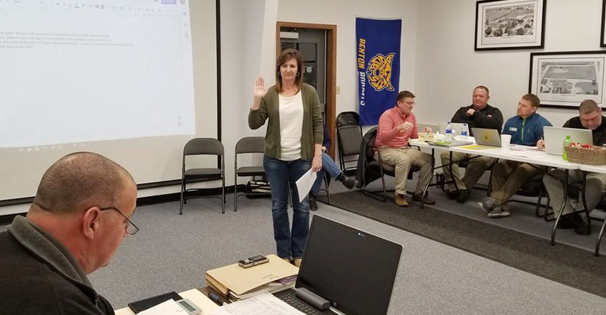 Board Secretary Doug Embray read the Oath of Office to Brenda Werning.