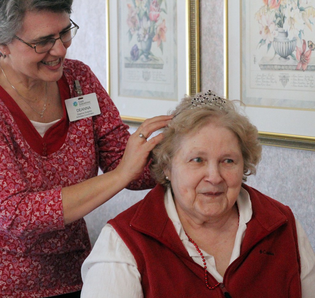 Kathleen Mathews smiles as she is crowned Valentine’s Queen at Belle Plaine Specialty Care. Crowning was Deanna Sutphin.