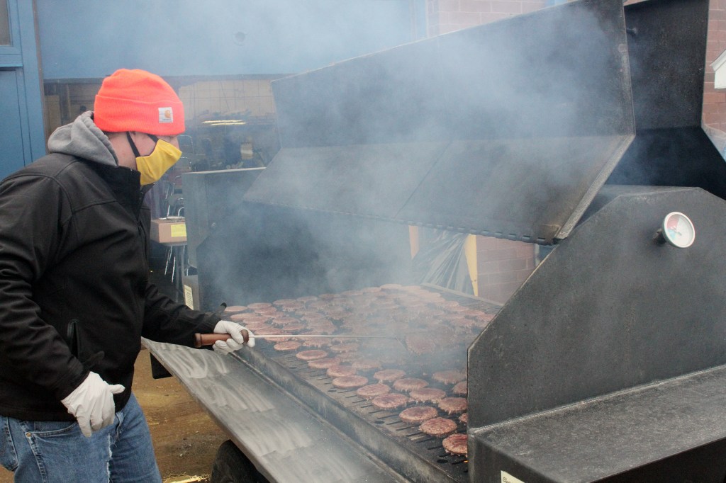 Connor Selken of the Benton County Cattlemen helps grill 560 burgers for Benton Community students on Friday, April 24, at the middle-senior high school in Van Horne. This is part of the school’s “Food for Kids” program. The grillers are all Benton alumni.Joey Zweigart of the Benton County Cattlemen also helped grill 560 burgers for Benton Community students on Friday, April 24, at the middle-senior high school in Van Horne.
