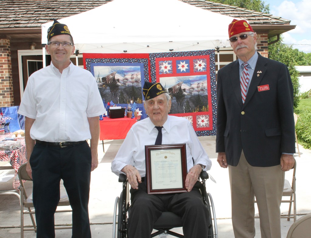 NEWHALL – An event noting Don Grovert’s 75 years of service with the American Legion also turned into a celebration of his 97th birthday on Saturday, May 30, in the driveway of Don’s home in Newhall.