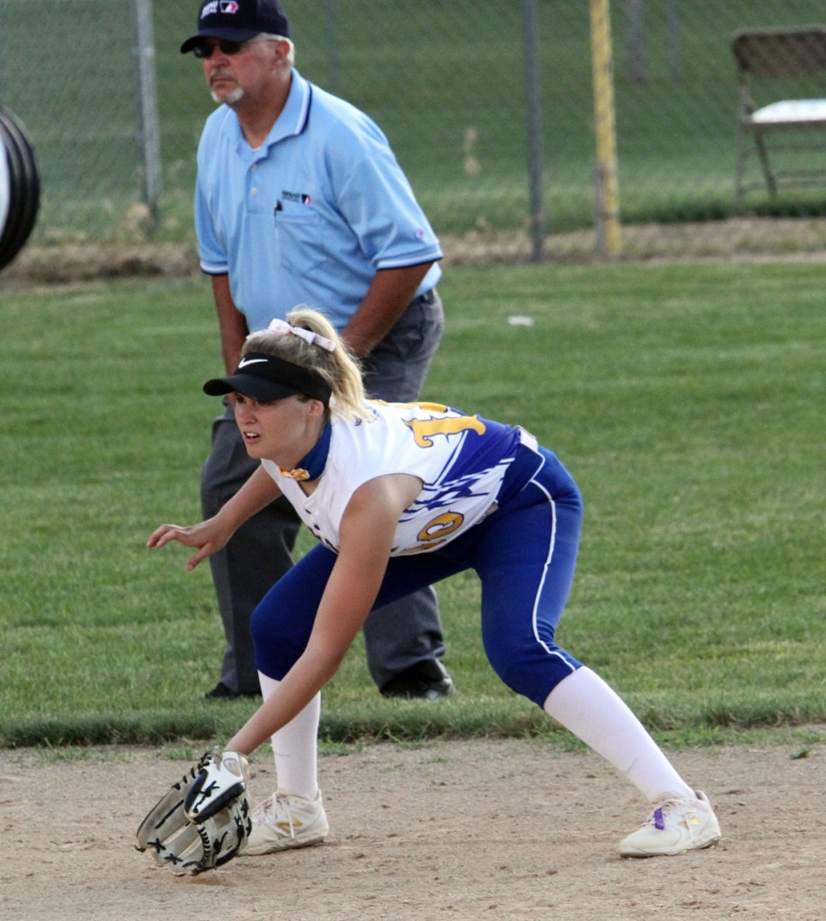 Benton’s Alyse Harvey is ready at shortstop in action against Independence.