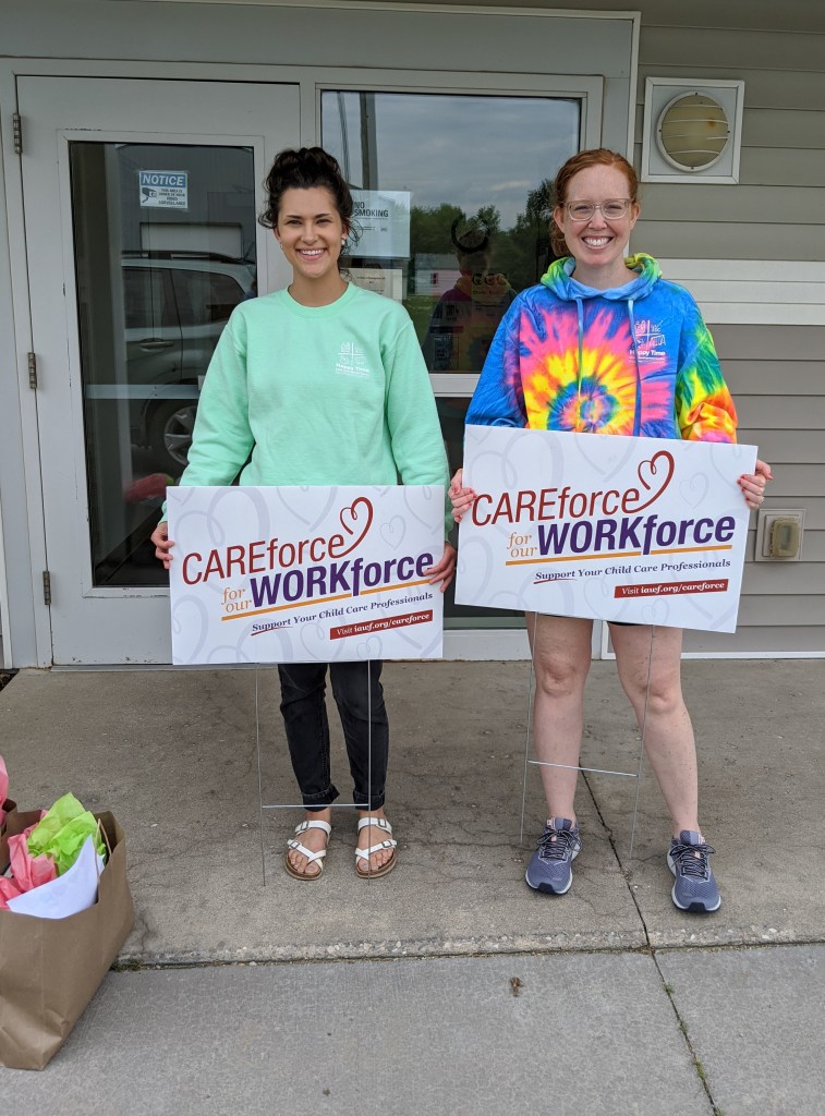 Better Tomorrows Early Childhood Iowa and IWF are currently distributing window clings, stickers, posters, and yard signs emblazed with the CAREforce for our WORKforce logo. IWF has also launched a web page with information for those interested in helping their local providers.