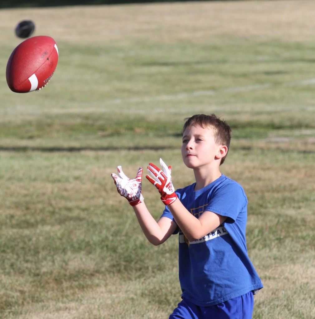 Ready for a catch at the Bobcat Football Camp, Aug. 3, in Van Horne.