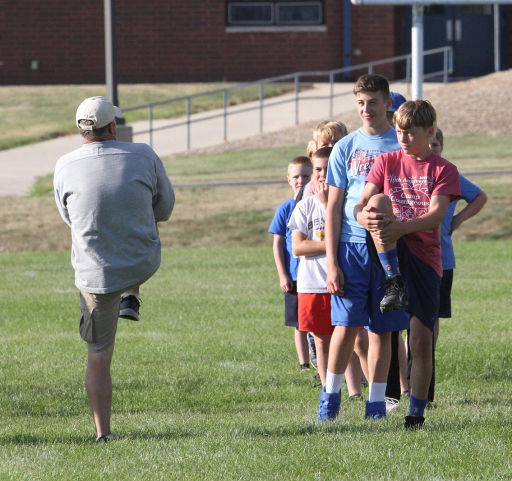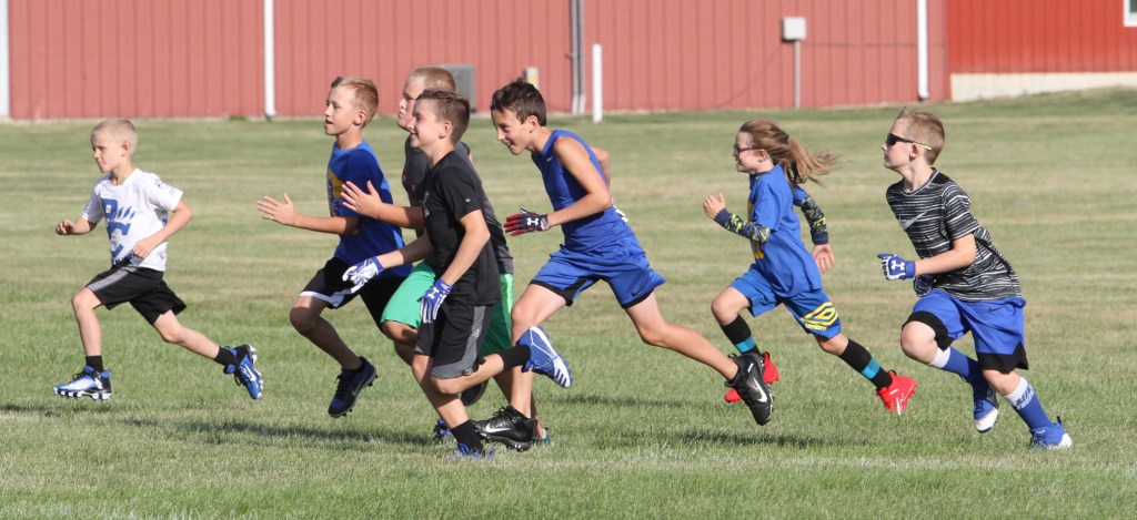 Running at the Benton football camp in Van Horne.