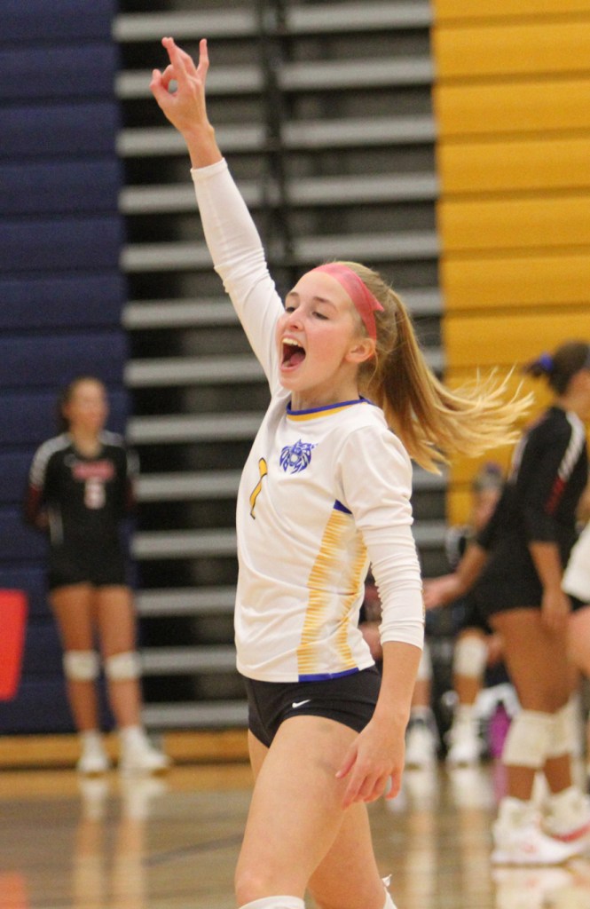 Benton was 12 of 48 in kills. Embretson had 6 and Phillips had 5. Embretson had 5 assists. The team had 29 serves with 5 aces and 2 errors. Pieper Nelson had 3 aces. With 4 digs each were Olivia Janss and Embretson.