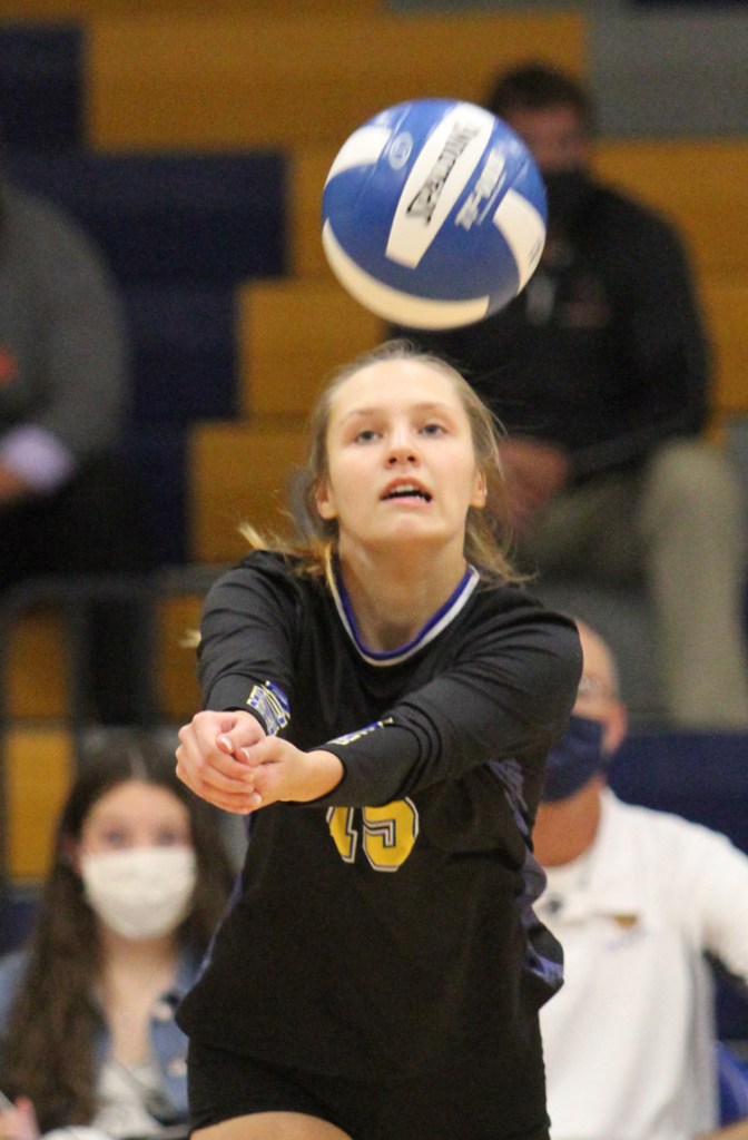 The team was 24 of 86 in serves with 13 errors. Grace Embretson had nine and Addison Phillips added seven. Embretson had 10 assists. Kiah Coffin had seven. The team had 20 service aces, with only three errors in 74 attempts. Embretson had nine aces. Phillips had four. With three each were Emma Townsley and Caitlin Keiper. Townsley had seven digs.