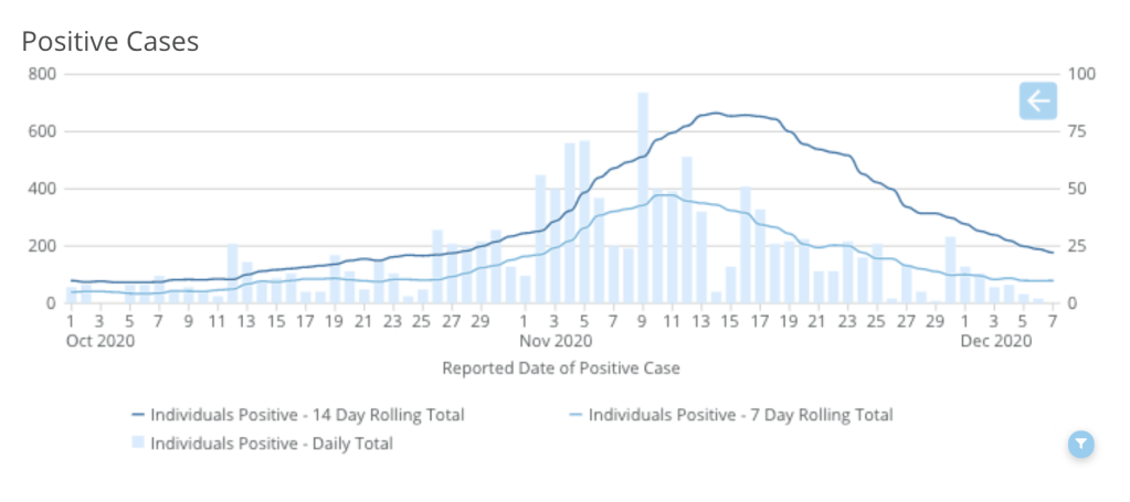 - Individuals positive per 100,000 (last 7 days) – 304.2