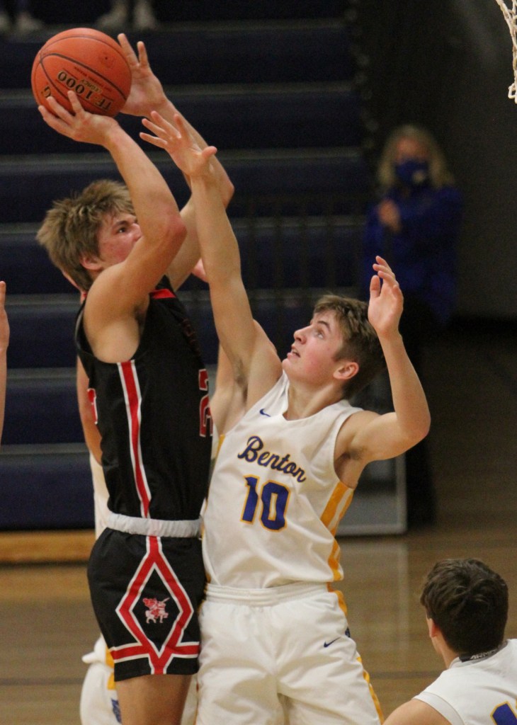 Benton lost in non-conference boys’ basketball action Monday, Dec. 14, at Mount Pleasant, 53-33. Aiden Harris led Benton with 15 points and seven rebounds. With two steals each were Colin Buch and Harris. Kyler Mahan blocked one shot. The team was 11 of 34 for field goals, 2 of 13 for three-pointers and 9 of 12 for free throws. The team had 23 rebounds and 15 turnovers.