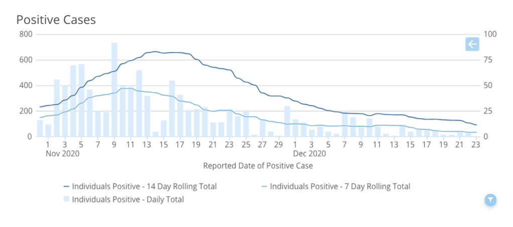 - Individuals positive per 100,000 (last 7 days) – 136.5