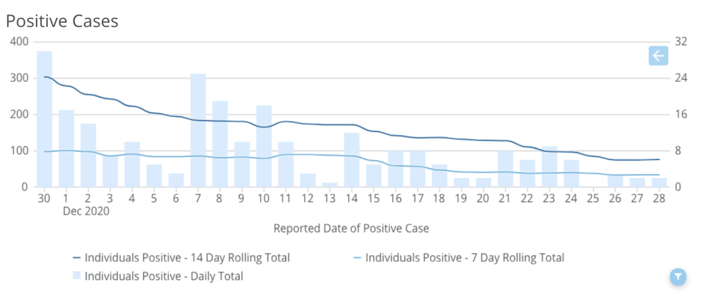 - Individuals positive per 100,000 (last 7 days) – 160.4