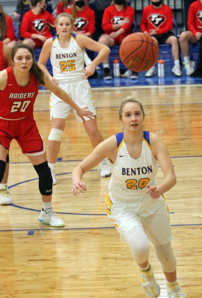 Jenna Twedt led Benton with 18 points and five rebounds. Zoey Junge had three assists. Twedt also had four steals. The team was 14 of 33 for field goals, 8 of 19 for three-pointers with 4 of 6 shooting by Twedt, and 13 of 14 for free throws. They had 18 rebounds, 13 steals and 15 turnovers.