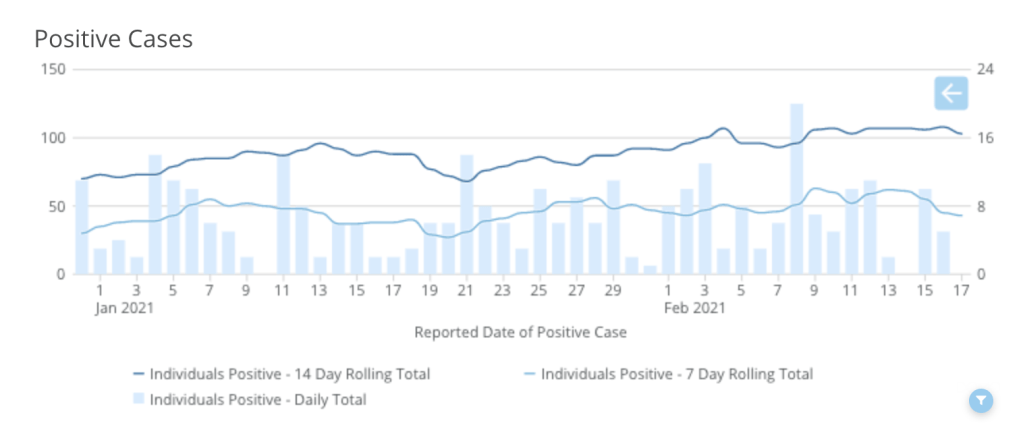 - Individuals positive per 100,000 (last 7 days) – 117.8