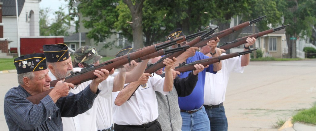 Legion members give a gun salute at Van Horne’s Memorial Day Service.