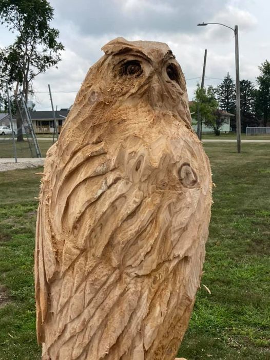 While discussing the park, due to the weather, the stump carver, Brian Parr, left before the event started, but he has an owl carved on the west side of the park, check it out.