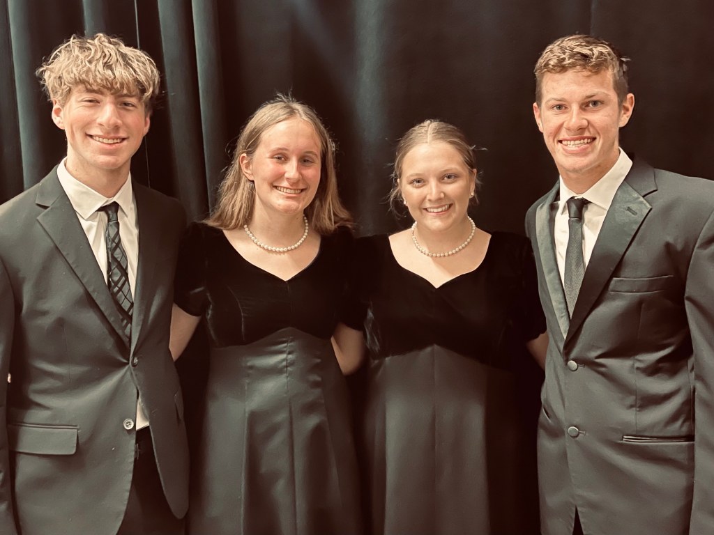 November 8, 2021 magdefrau BC music students earn all-state honors Caiden Becker, senior, Choir, Baritone; Caitlin Atwood, Senior, Band, Bass Clarinet; Ella Hayden, Senior, Choir, Soprano 2; Easton Patterson, Junior, choir, Bass. Photo from Benton Community. Festival is November 18-20, 2021 at the Iowa State Center, Ames. Share this: Share on X (Opens in new window) X Share on Facebook (Opens in new window) Facebook Like Loading... Related