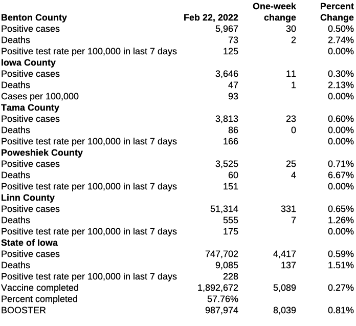 February 23, 2022 magdefrau Local Covid-19 counts for February 22, 2022 Share this: Share on X (Opens in new window) X Share on Facebook (Opens in new window) Facebook Like Loading... Related