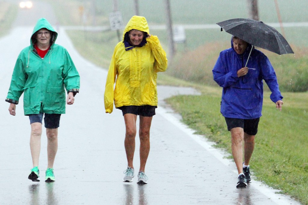 One-mile walkers. Jone Longnecker, Sue Grieder and Dorma Rusbult.