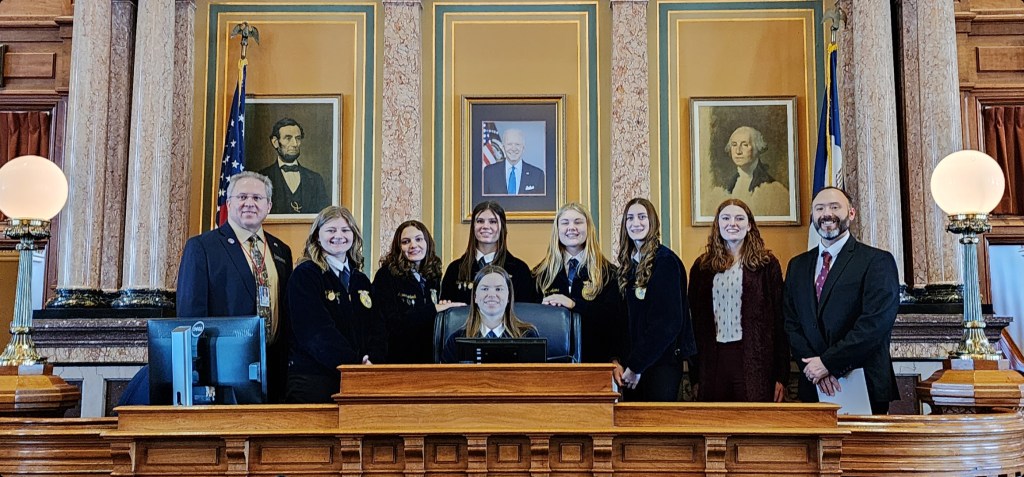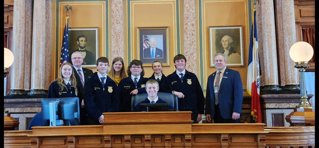 Also on Jan. 31st, the Capitol was pleasantly invaded by a sea of blue jackets – dozens of high school chapters of the Future Farmers of America (FFA). Our new Senator Charlie McClintock and I were able to sit down and have a Q & A session with the Benton Community and Belle Plaine chapters. It was so refreshing to see and talk with all these polite students, and I’m so proud to represent them! Even though FFA was made up of mostly (90% or more) guys and lived on a farm when I was in FFA, it looks like half or more of today’s FFA members are young women and now far more members live in towns. What hasn’t changed is the good character of the today’s members!