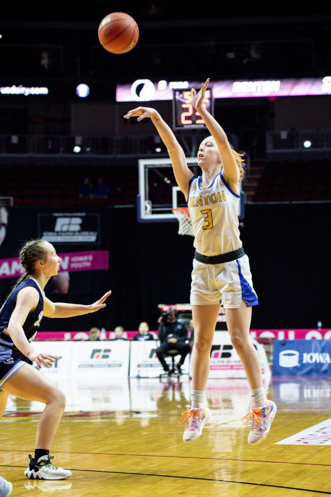 Benton faces No. 8 Vinton-Shellsburg (18-7) on Thursday, March 2, in the semifinal round of Class 3A. Vinton-Shellsburg reach the semifinals by defeating No. 1 Estherville Lincoln Central, 54-46. The game is at 1:30 p.m.