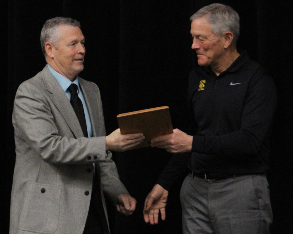 The week before that, many traveled to see BC coach Kal Goodchild get inducted into the Iowa Football Coaches Hall of Fame, with the plaque presented by Coach Kirk Ferentz. They saved Kal for the final award, knowing he would deliver a standup routine that the crowd would enjoy.