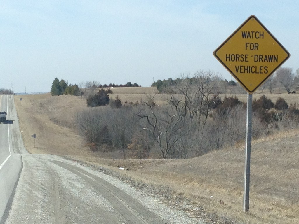 A lot of my friends are back from trips to the gulf, the Caribbean, Florida and Arizona. I’m still bouncing back from my big trip down south over the border. Maryville and Kansas City. The instant that I pull off the interstate and see the sign to watch for horse-drawn vehicles, I know I’m in the right place.