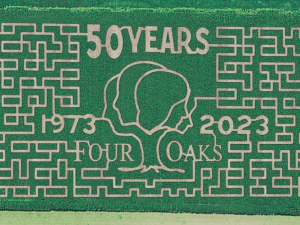 Samantha Petersen, Bloomsbury Farm, told those gathered at the maze, “We’ve had a wonderful relationship with Four Oaks over the years. We couldn’t be more excited or proud to celebrate their 50th anniversary with our corn maze design this year. Nothing brings my family more joy than sharing this beautiful place with the community, building connections and building local relationships, and supporting causes that are bigger than ourselves.”
