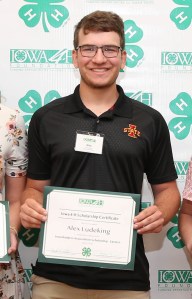 Ames, Iowa – Alex Ludeking from Benton County, was awarded the Iowa Bankers Association 4-H Scholarships through the Iowa 4-H Foundation at the recognition ceremony on Sunday, July 9 in Ames.