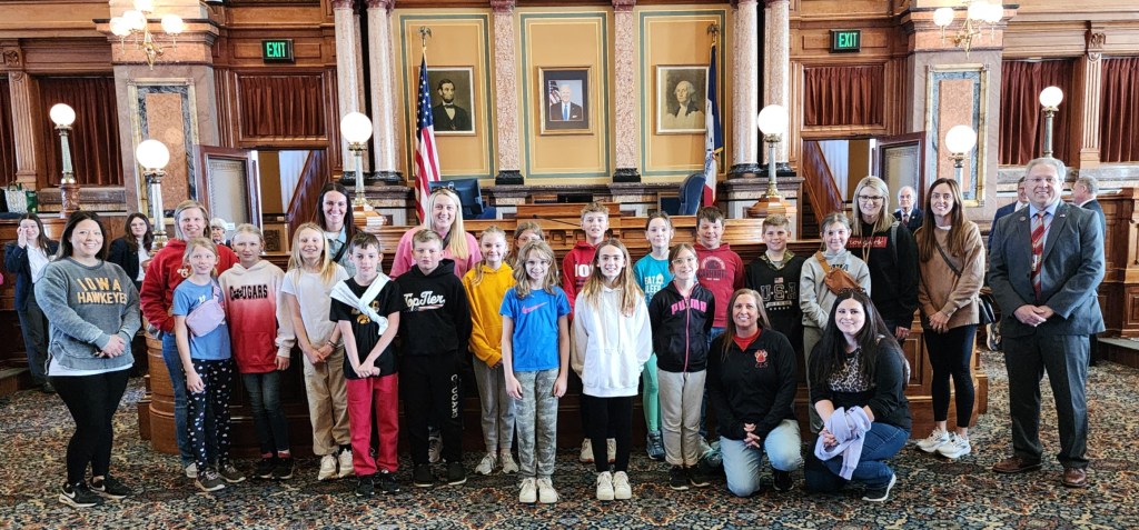 On Friday, April 19th, we were fortunate to have the 4th grade students from Central Lutheran School in Newhall visit the Iowa House on their annual field trip to the Capitol! During session, the House is typically not there on Fridays, so this was a treat for legislators and them!
