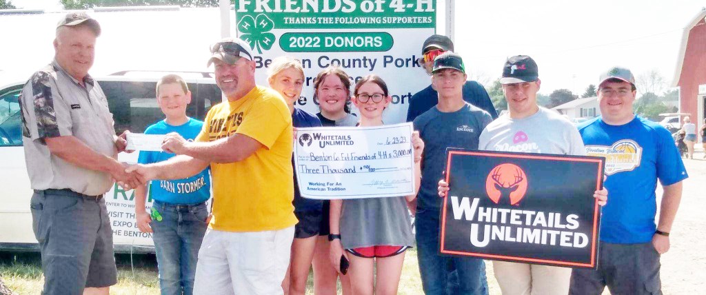 For the last few years at the Benton County Fair, the Prairie Creek Sports Club, a division of Whitetails Unlimited, presents a check in the amount of $3000 to the Benton County Friends of 4-H.