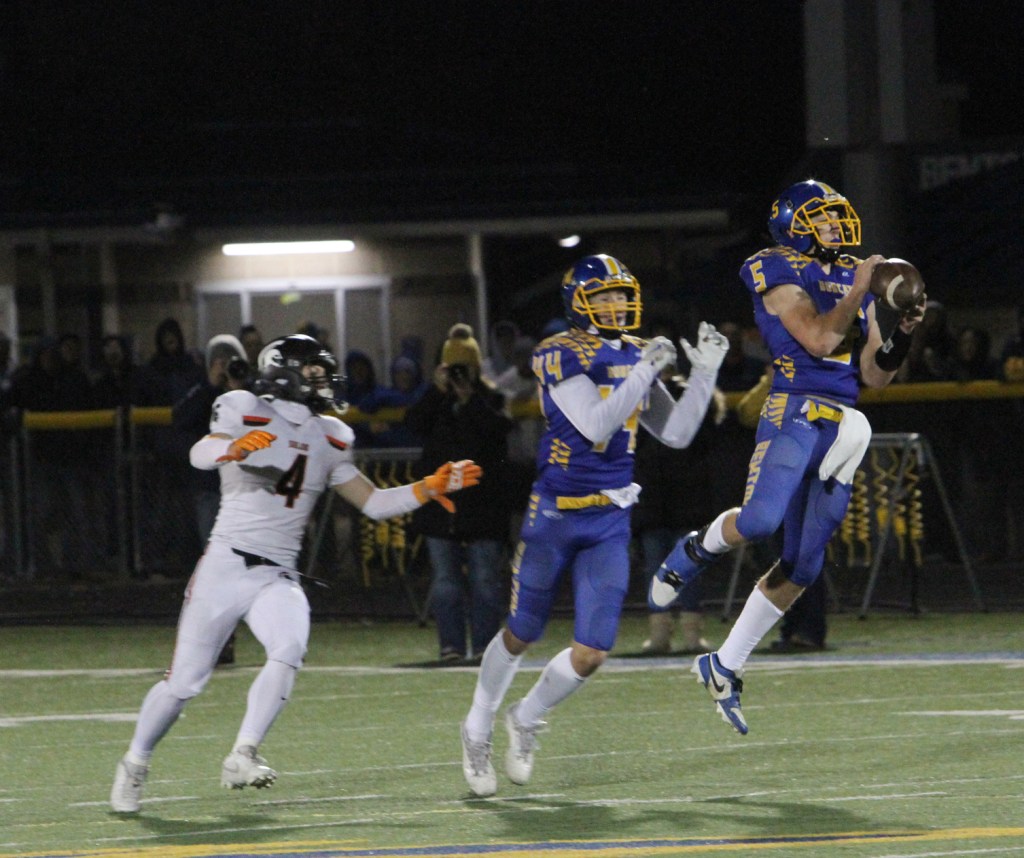 Solon’s Ty Bell was 17 of 23 for passing for 219 yards and three touchdowns. He threw one interception. Solon rushed for 125 yards, led by Eddie Johnson with 92 yards.