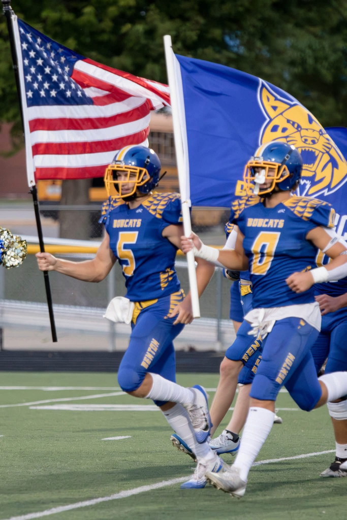 Carson Nolan was 18 for 30 in passing for 182 yards with two interceptions. Benton rushed for 114 yards. Nolan had 15 carries for 41 yards. Elias Bieschke had 15 carries for 60 yards and one touchdown. Kaden Wright had one carry for 13 yards. Grant Volesky had one catch for 10 yards. Brody Timmerman had seven catches for 57 yards. Evan Martin had two carries for 14 yards. Owen Von Ahsen had five catches for 57 yards. Elias Bieschke had one carry for five yards. Eli Patterson had two catches for 39 yards. Grant Volesky had 7.0 total tackes with three solo. Kaden Mitchell had 7.0 total tackles with five solo. Nolan had 6.5 total tackles with five solo. Eli Patterson had one interception. Timmerman had two kickoff returns for 22 yards. Von Ahsen had two returns for 39 yards. Von Ahsen also had one punt return for 12 yards. Drew Ballard had two kickoffs and 93 yards and one touchback. He was 0 for 1 for points after touchdown. Patterson had five punts for 153 yards.