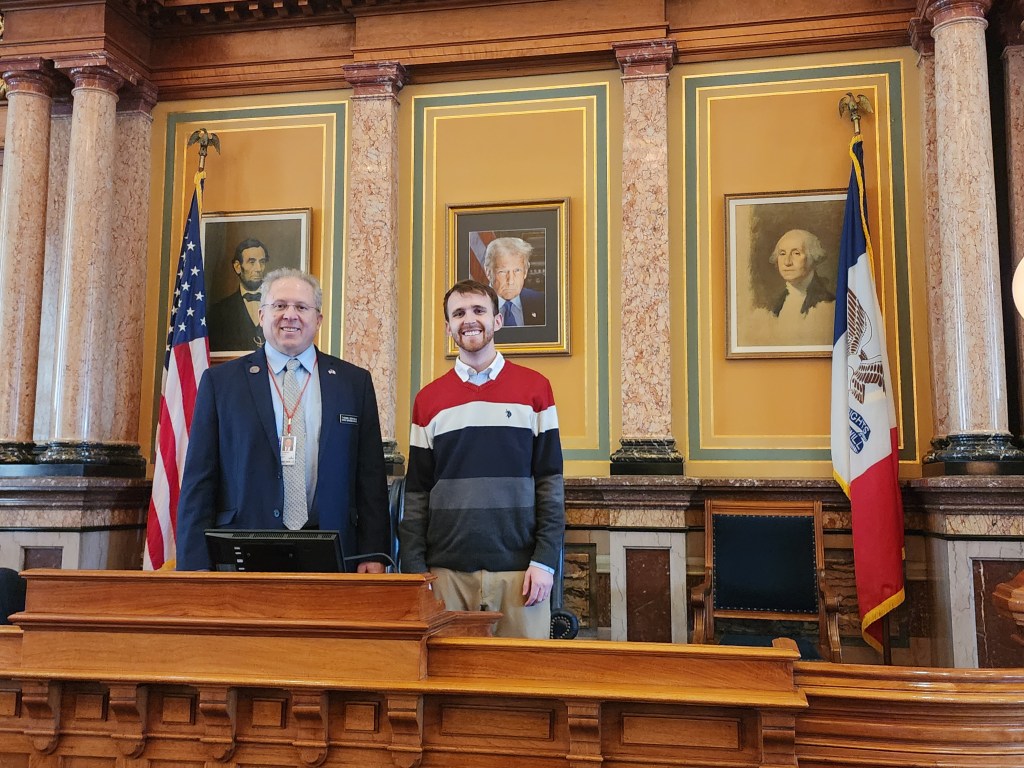 On February 17th, I visited with Brad Mertens, CEO of the Metco Credit Union in Cedar Rapids, about the priorities credit unions would like to see happen in the legislature. On February 18th, Carter Hayden of Blairstown visited the capitol before attending a function for republican gubernatorial candidate Zach Lahn.